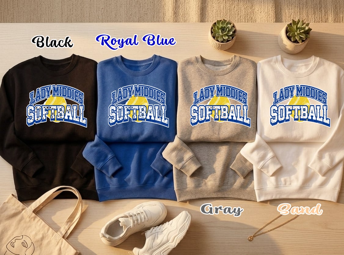 • Graphic: "LADY MIDDIES" arched over a large, bold "SOFTBALL" headline.